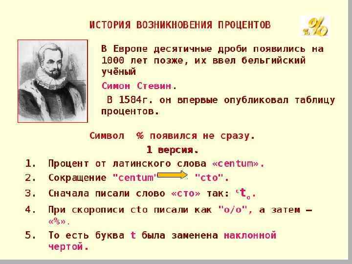 Слово процент означает «сотая часть» . Сотая часть чего? Хороший вопрос! Процент – это сотая часть любой величины: пути, массы. площади, количества объема.