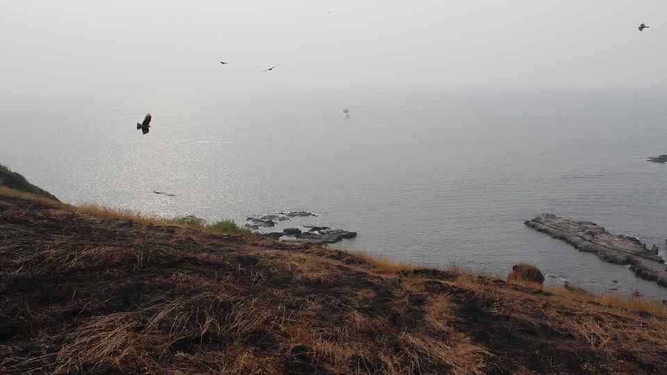 Во время отлива на мокром песке стаи ворон и собак. Они собирают морскую живность.