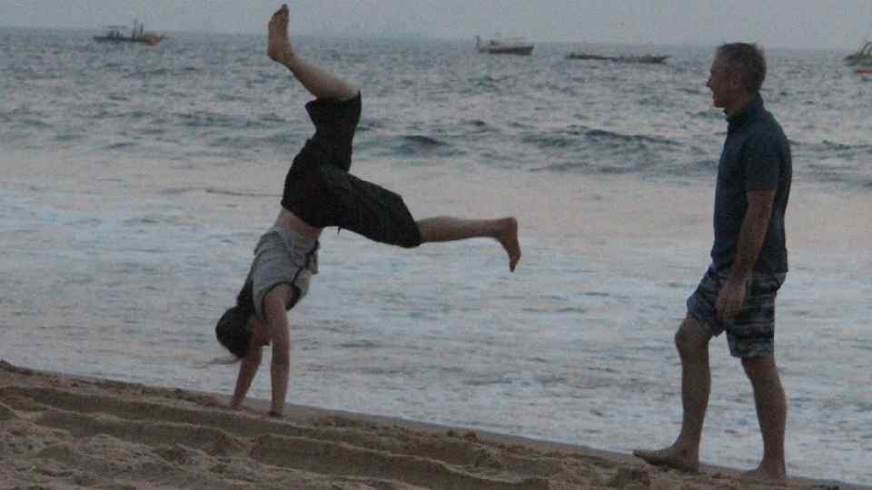 Солнце сильное. Близко все-таки от экватора. Первые дни мы были аккуратны: мазались кремом со степенью защиты 50, носили одежду с длинными рукавами, в самое пекло на пляж не вылазили. Кроме того, нам повезло: стояла небольшая дымка, солнце было слегка приглушенным. А под конец и мы разухабились, и солнце вжарило вовсю. Полдня купания без намазывания кремом – и все обгорели.