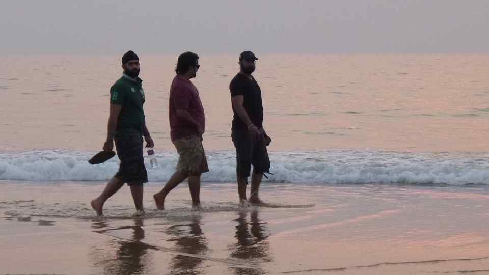 Океан Аравийское море Индийского океана. Мы видим океан впервые. Сезон еще только начинается. Море станет хорошим где-то с середины декабря. А сейчас оно теплое-теплое, очень приятное, но еще неспокойное.