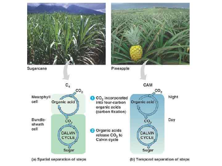 Распространение C 4 – растений Кукуруза, сорго, просо, портулак, сахарный тростник, росичка Злаковые Сложноцветные Никтагиновые Аизооновые Осоковые Портулаковые Молочайные Амарантовые Маревые Парнолистниковые Gramineae Аstеrасеае Nусtаginасеае, Аizоасеае Сурегасеае Роrtulасасеае Еuрhоrbiасеае Аmаrаnthaсеае Сhеnороdiасеае Zуgорhуllасеае