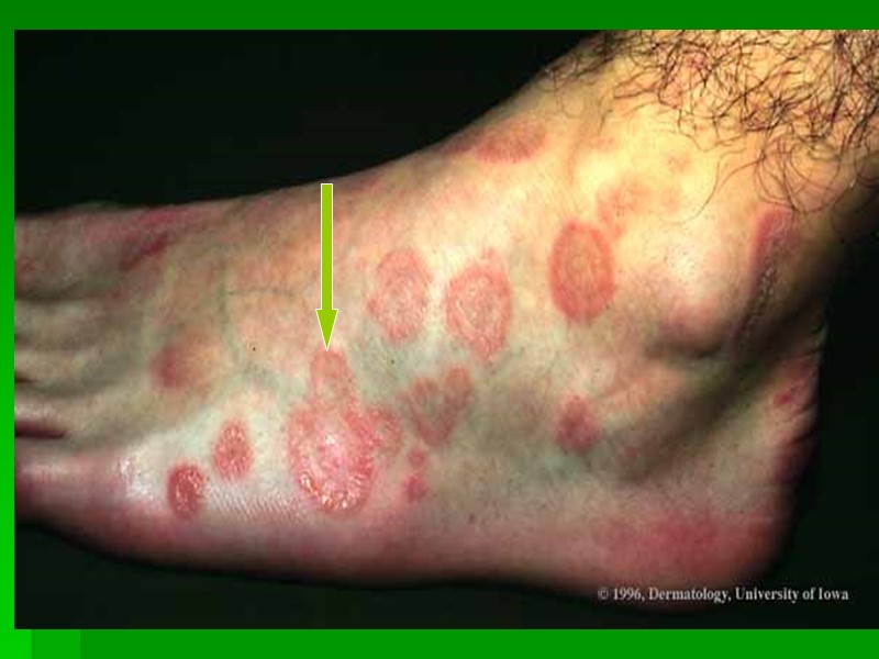 Многоформная экссудативная эритема. На ладони - мишеневидные элементы