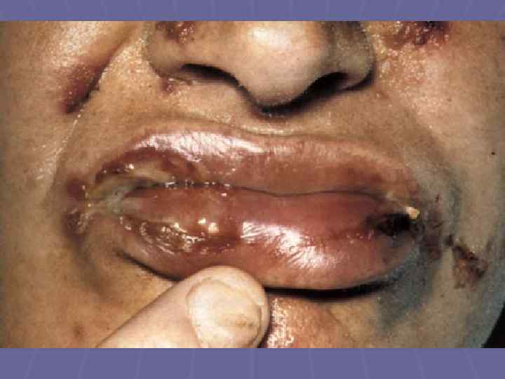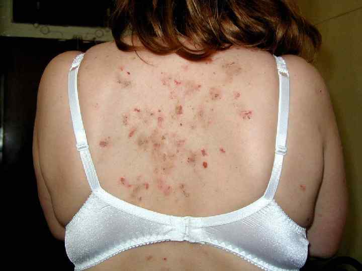 Симптомы § Симптом Никольского (истинный) – механическая отслойка эпидермиса при надавливании на непораженную кожу; § Симптом Никольского (краевой) – при потягивании пинцетом за обрывок пузыря от центра к периферии отслойка вышележащих слоев эпидермиса от нижележащих; § Симптом Асбо – Хансена – при надавливании сверху на пузырь, он увеличивается в размерах; § Симптом Шеклакова ( «груши» )- верхняя часть спавшаяся, жидкость скапливается в нижнем отделе