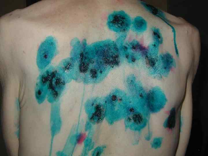 Проба Ядассона § Внутрь 1 ст. ложка 5% раствора калия йодида. Проба «+» при обострении кожного покрова; § На свободный от высыпаний участок кожи предплечья накладывают 50% мазь с калий йодидом на ланолине. Через 24, 48 ч на месте контакта с мазью возникает эритема, пузыри, папулы – обострение основного процесса