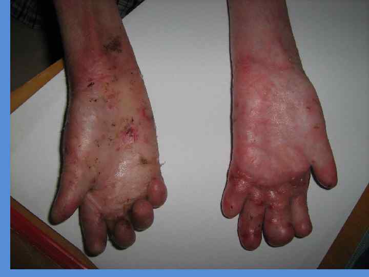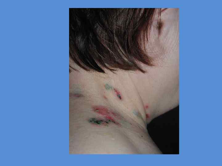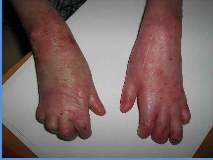 • • • Общее состояние нарушается редко; М. б. симптомы общей интоксикации; Симптом Никольского отрицательный Слизистая рта не поражается. Повышенная чувствительность к йоду: проба Ядассона: йодистый калий 20 -50%.