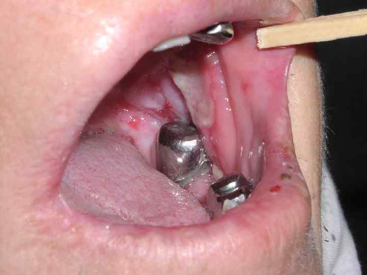• Высыпания в ротовой полости сопровождаются выраженной болезненностью; саливацией; невозможностью нормально разжевывать пищу и глотать пищу; проводить гигиеническую обработку рта. • На эрозиях появляются гнойно-фибринозные налёты со зловонным запахом; • Могут быть охриплость голоса, поражение слизистой носа
