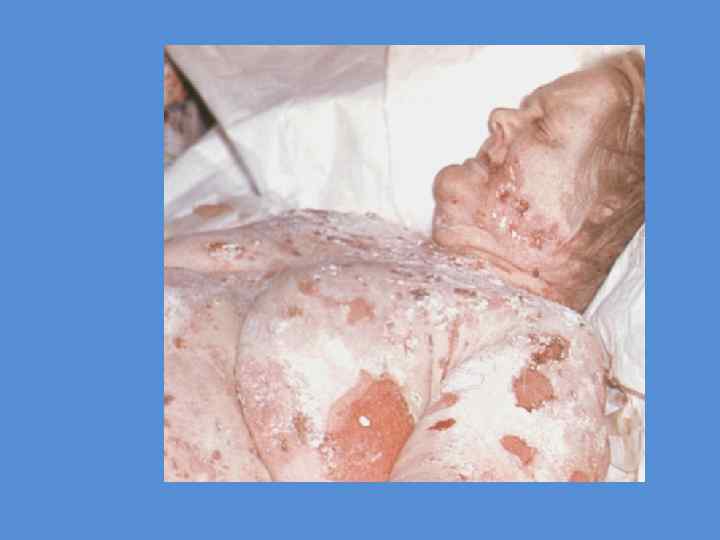 Дифференциальный диагноз • • Вульгарная пузырчатка Дерматит Дюринга Буллёзная токсидермия Буллёзная форма полиморфной экссудативной эритемы