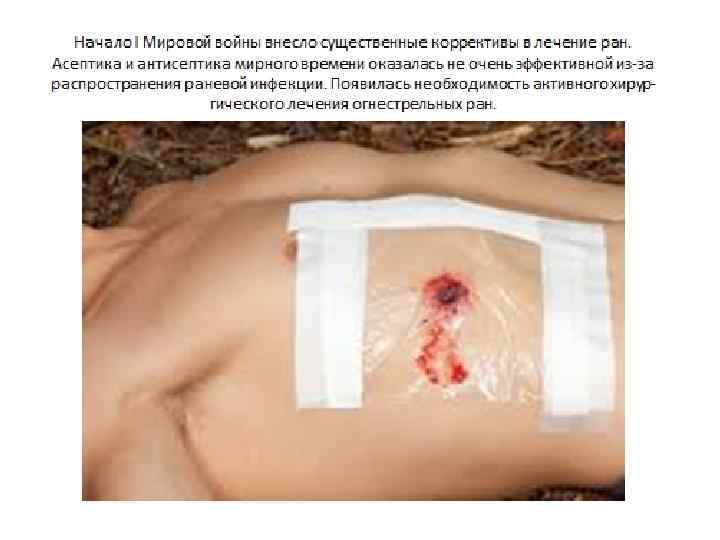 В 1863 г. Н. И. Пирогов в своем труде «Начала общей военнополевой хирургии» рекомендовал принцип «сберегательного лечения ран» , который заключался в резком сокращении показаний к первичной ампутации конечностей и удалению инородных тел из раны, зондированию и исследованию ран пальцами. Им предложена иммобилизация конечности для создания покоя раны и рассечение раны, как метода лечения гнойных осложнений.