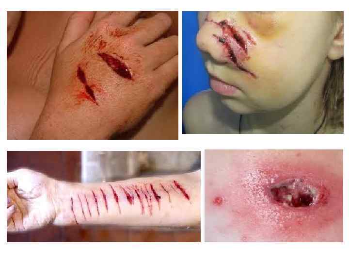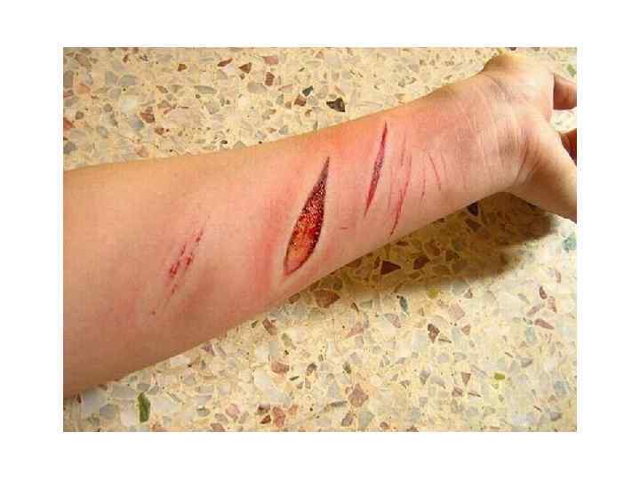 Классификация ран 1) 2) 3) 4) 5) 6) 7) 8) 9) резанные; колотые; рубленные; ушибленные; огнестрельные; размозженные; рваные; укушенные; скальпированные.