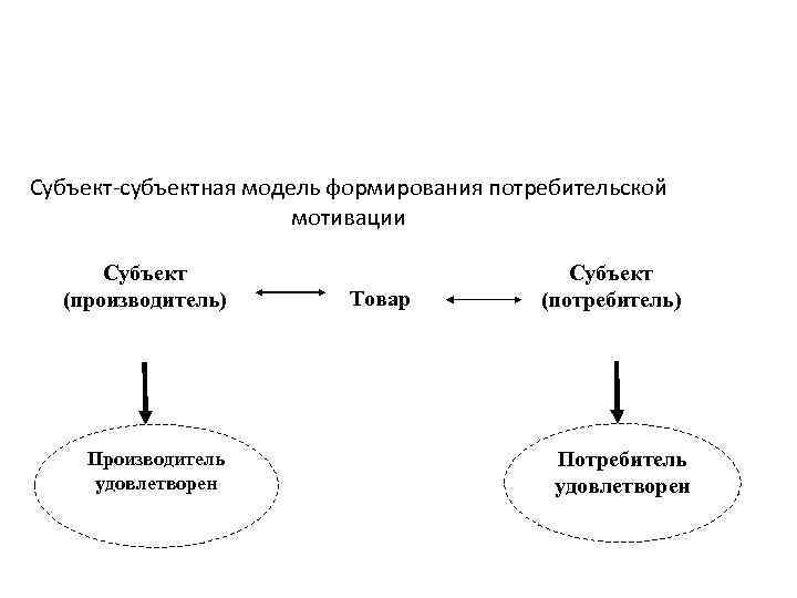 Субъект-субъектная модель формирования потребительской мотивации Субъект (производитель) Производитель удовлетворен Товар Субъект (потребитель) Потребитель удовлетворен
