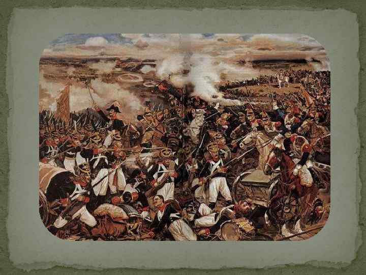 Отечественная война 1812 года В начале Отечественной войны 1812 года 2 -я Западная армия располагалась под Гродно и оказалась отрезанной от основной 1 -й армии наступавшими французскими корпусами. Багратиону пришлось с арьергардными боями отступать к Бобруйску и Могилёву, где он после боя под Салтановкой перешёл Днепр и 3 августа соединился с 1 -й западной армией Барклая-де-Толли под Смоленском. Багратион выступал сторонником привлечения к борьбе с французами широких слоёв народа, был одним из инициаторов партизанского движения. В своих письмах к руководству разыгрывал «русскую карту» , настаивая, что генералы-немцы погубят Россию, а военного министра Барклая де Толли, приказывавшего отступать, прямо называл изменником. Возглавлял партию «горячих голов» , требовавших дать Наполеону генеральное сражение; имел огромную популярность среди офицеров. При Бородино армия Багратиона, составляя левое крыло боевого порядка русских войск, отразила все атаки армии Наполеона. Он прославился благодаря сооружению и вооружению “Багратионовых флешей”, за которые шли кровопролитные бои. В итоге наши войска отбили все атаки французов несмотря на их перевес в силе. Багратионовы флеши – это понятие, которое стало символом героизма русского солдата, его храбрости, военной выучки. Восемь раз прославленные полководцы Наполеона, имея громаднейший перевес в живой силе, пытались взять эти самодельные полевые укрепления. Бой за Багратионовы флеши позволил русским солдатам выстоять на Бородинском поле.