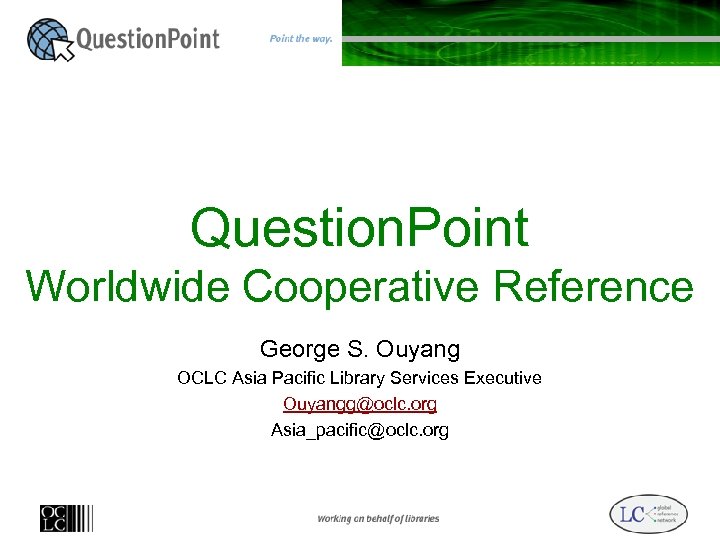 Question. Point Worldwide Cooperative Reference George S. Ouyang OCLC Asia Pacific Library Services Executive Ouyangg@oclc. org Asia_pacific@oclc. org