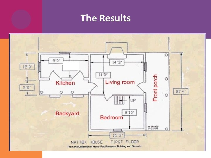 YOUR TASK To answer this question: What was the floor plan of the Mattox house in the 1930 s? You have the following sources: Five images of Mattox House (exterior only) Interviews with Dr. Leslie Long, Bryan Co. Resident and Agricultural Specialist E. J. Cutler, Ford Executive (accompanied Henry Ford when he purchased the house) Charles Boles, Mattox Neighbor Carrie Mattox, Daughter Amos Mattox, Jr. , Son (2 years older than Carrie)