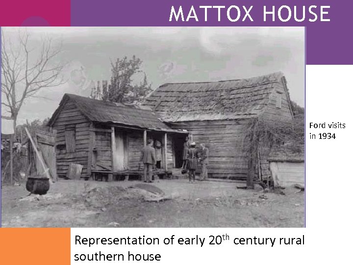 MATTOX HOUSE Ford visits in 1934 Representation of early 20 th century rural southern house