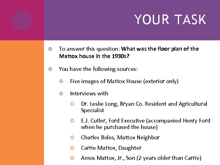 EXIT TICKET Before you leave answer the following question: What did you learn about history from the Mattox house activity?