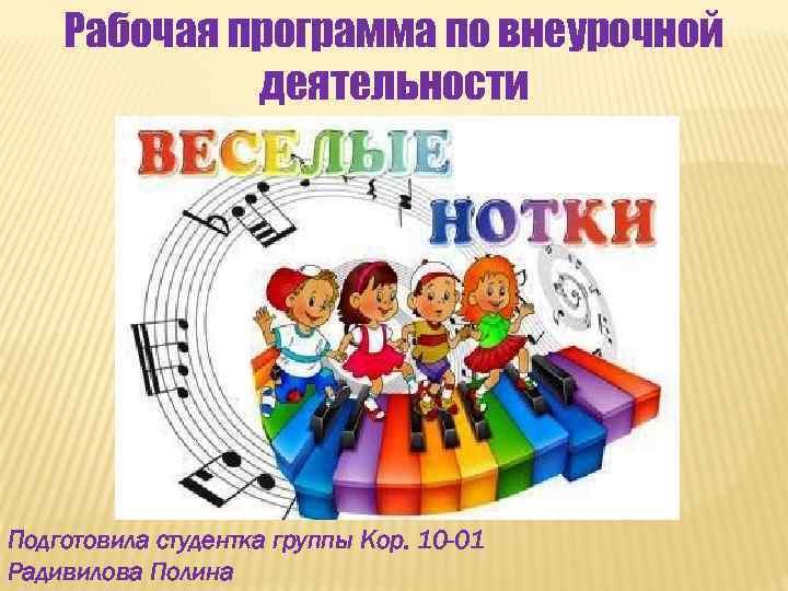 Рабочая программа по внеурочной деятельности Подготовила студентка группы Кор. 10 -01 Радивилова Полина
