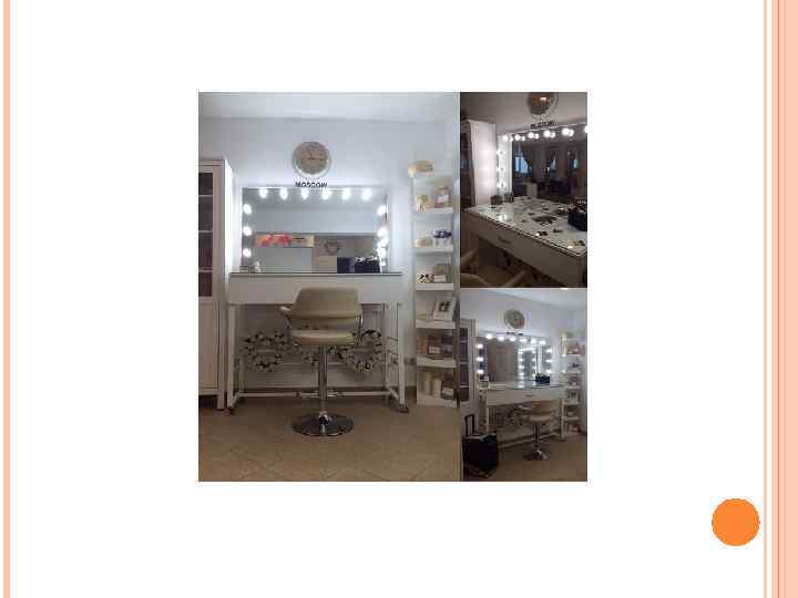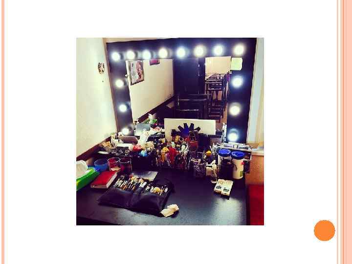 Стол визажиста может быть стационарным или передвижным (на колесиках), а также в виде компактной сумки-кейса, которая сама является столом; особое внимание следует уделить освещению, ведь от этого зависит макияж.