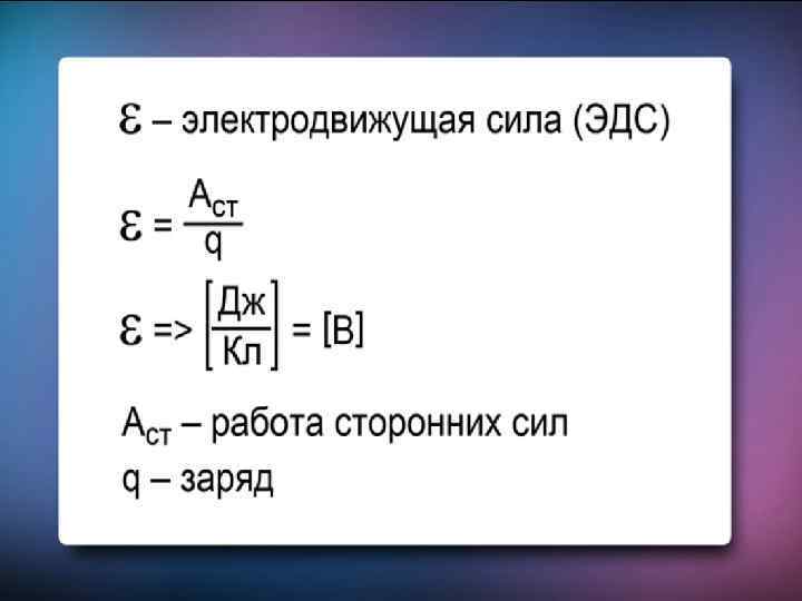 Физический смысл ЭДС – определять работу сторонних сил по перемещению электрического заряда.
