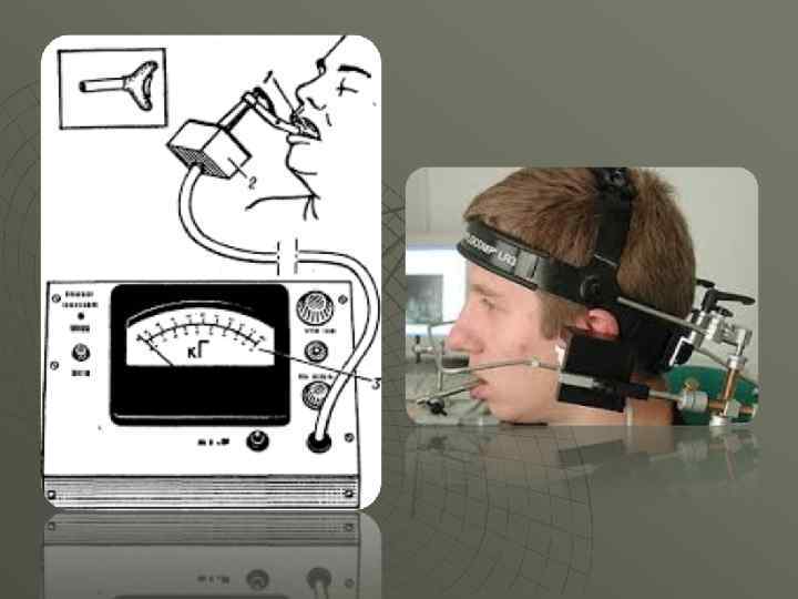 Гнатодинамометрия u u Метод оценки силовых эффектов между зубамиантагонистами при сжатии челюстей. Результат измерения зависит от силы жевательных мышц и чувствительности механорецепторов периодонта. Осуществляется с помощью гнатодинамометра. Используется для оценки результатов тренировки жевательной мускулатуры и пародонта. Метод оценки эффективности работы жевательного аппарата. Используется при протезировании и реконструктивных операциях на челюстях. Осуществляется с помощью пищевых продуктов (орехи, морковь, хлеб) или тестовых материалов (оптосил, 20 % желатин, отвержденный в 4 % растворе формалина).
