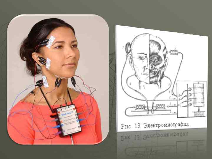 Электромиография u u Метод исследования иннервации и координации работы мышц челюстно-лицевой области. Основан на графической регистрации их биоэлектрической активности. Осуществляют с помощью электромиографа и электродов — игольчатых для определения активности отдельных двигательных единиц исследуемой мышцы (локальная электромиография), плоских — для определения суммарной активности участка мышцы (суммарная или поверхностная электромиография) и при стимуляции двигательного нерва, иннервирующего исследуемую мышцу (стимуляционная электромиография)