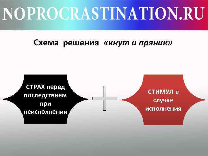 Схема решения «кнут и пряник» СТРАХ перед последствием при неисполнении СТИМУЛ в случае исполнения