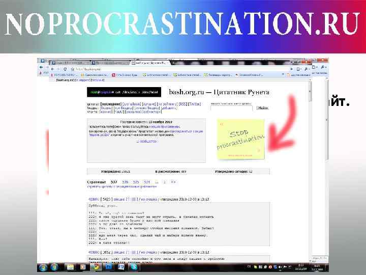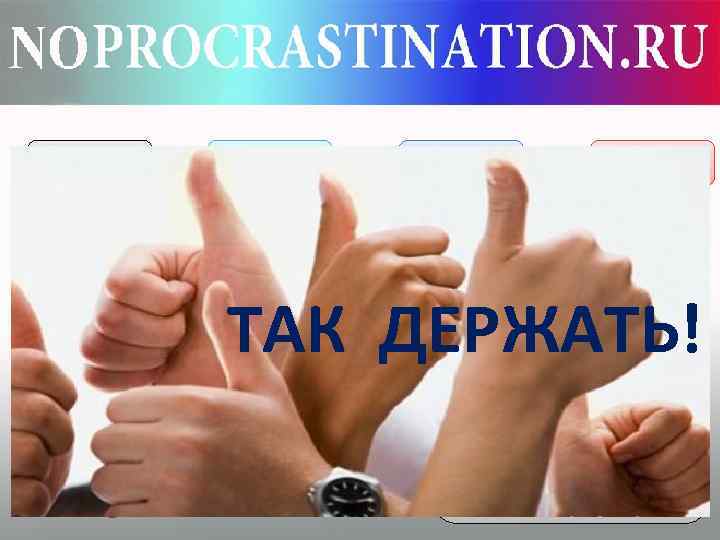 ЧТО ЭТО? УГРОЗЫ Описание явления Примеры запугивающих исходов: девочки – излишний вес и т. д. мальчики - армия ЖМИ, ЕСЛИ НЕТ ДЕЛ ПОМОЩЬ Лозунги типа: «Вали отсюда!» , на крайний случай – контакт психолога «Bash. org» ТАК ДЕРЖАТЬ! Я ИСПРАВЛЮСЬ Ты на сайте: ? ? минут НЕ БУДЬ ПРОКРАСТИНАТОРОМ!