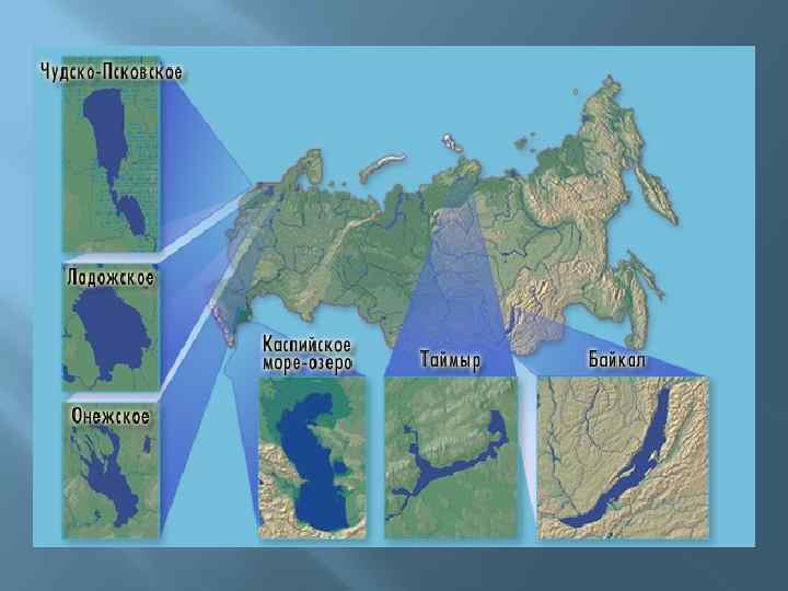 Озеро Глубина (м) Байкал (Россия) 1637 Танганьика (Африка) 1435 Каспийское море (Россия ) 1025 Ньяса (Африка) 706 Иссык-Куль (Киргизия) 702 Б. Невольничье (Канада) 614 Киву (Африка) 496 Верхнее (США) 393 Женевское 310