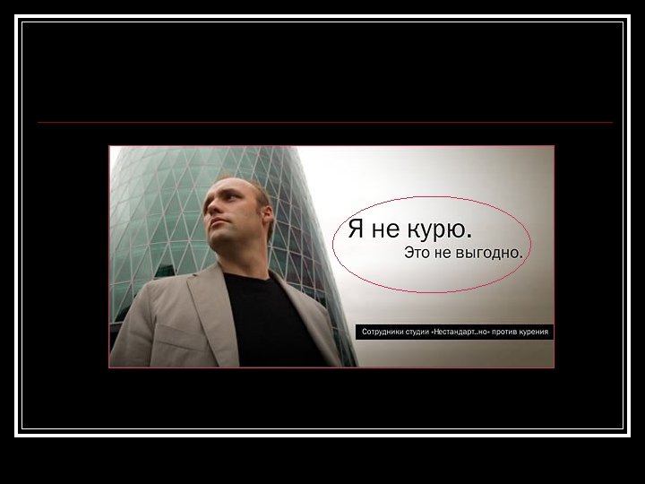 Миф второй КУРЕНИЕ- ЭТО БЕЗВРЕДНОЕ ЗАНЯТИЕ Это не так. Курение - главный фактор риска заболеваний легких, сердца, нервной системы. 9 из 10 больных раком легких курили. Если человек начал курить в 15 лет, продолжительность его жизни уменьшается более, чем на 8 лет. Начавшие курить до 15 лет в 5 раз чаще умирают от рака, чем те, кто начал курит после 25 лет. Ученые Германии установили, что каждая сигарета сокращает жизнь на 12 минут.