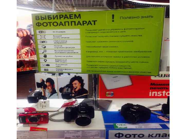 Уголок фототехники При поддержке Nikon, Canon, Sony, Olympus и других брендов компания открыла на территории своих магазинов зону фототехники. По данным аналитиков «М. Видео» , компании удалось увеличить средний чек от продаж фотоаппаратов и сопутствующих товаров на 70%.
