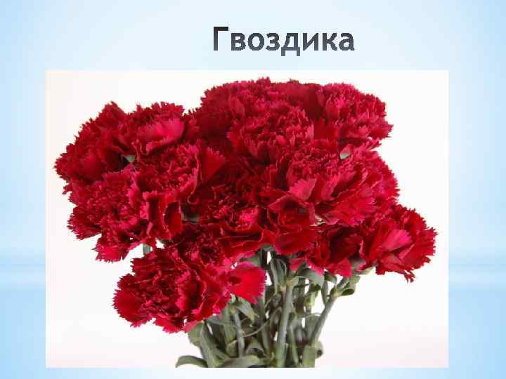 • Гвоздика- Травянистое дикорастущее и садовое растение с яркими цветками и (у некоторых разновидностей) с пряным запахом