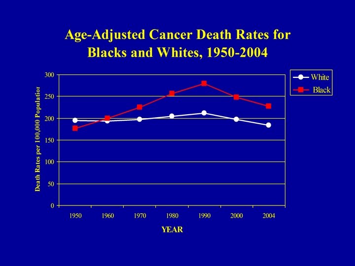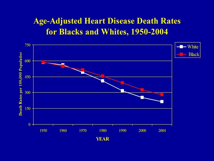 Meharry vs Johns Hopkins A 1958 – 65, all Black, cohort of Meharry Medical College MDs was compared with a 1957 - 64, all White, cohort of Johns Hopkins MDs. 23 -25 years later, the Black MDs were more likely to have: § higher risk of CVD (RR=1. 65) § earlier onset of disease § incidence rates of diabetes & hypertension that were twice as high § higher incidence of coronary artery disease (1. 4 times) § higher case fatality (52% vs 9%) Thomas et al. , 1997 J. Health Care for Poor and Underserved