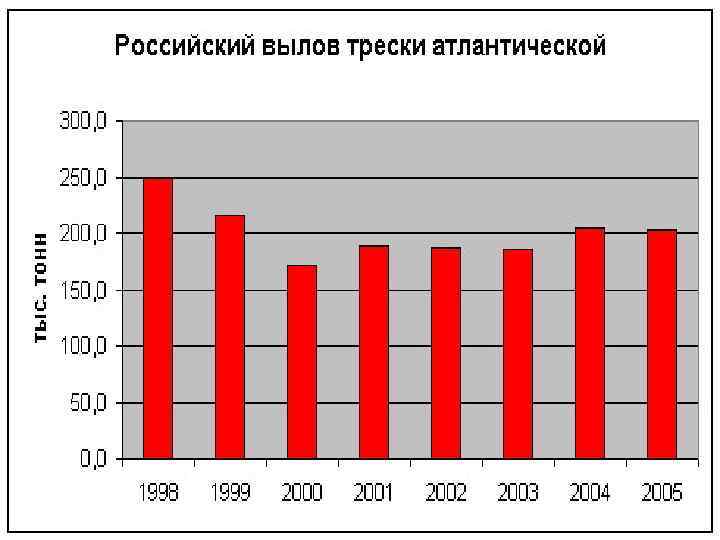 • Лимит вылова атлантической трески на 2015 г. установлен в объеме 894 тыс. тонн. Национальная квота России по атлантической треске составила 382 тыс. тонн.