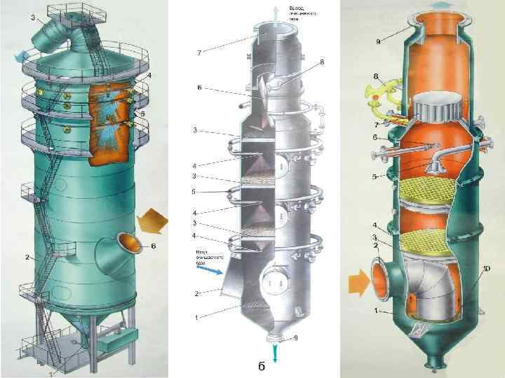 АБСОРБЕР СЕРИИ АКУ-6 Абсорберы серии АКУ-6 (абсорбер шестисекционный комбинированный унифицированный) эффективно очищают отходящие газы сложного химического состава, содержащие взвешенные вещества с плотностью ниже воды. В таких аппаратах эффективно очищаются газы производств пищевой промышленности, производства комбикормов, цехов по переработке отходов мясокомбинатов на мясо-костную муку и пр. , поскольку в них могут использоваться от 1 до 3 -х абсорбентов различного химического состава (вода, кислые и щелочные растворы). В настоящее время освоен выпуск аппаратов производительностью 15 и 30 тыс. м 3/ч.