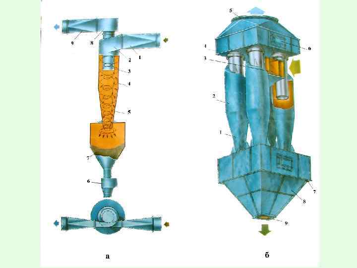 Зависимость эффективности улавливания от фракционного состава твёрдых частиц и аэрозолей в газовом потоке для различных типов оборудования Тип оборудования Общая эффективность, % Эффективность улавливания, % <5 мкм 5 -10 мкм 10 -20 мкм 20 -40 мкм >40 мкм Пылеосади-тельная камера 58, 6 7, 5 22 43 80 90 Обычный циклон 65, 3 12 33 57 82 91 Циклон с удлинённым конусом 84, 2 40 79 92 95 97 Электрофильтр 97, 0 72 94, 5 97 99, 5 100 Полый скруббер, орошаемый водой 98, 5 90 96 98 100 Скруббер Вентури 99, 5 99 99, 5 100 100 Рукавный фильтр 99, 7 99, 5 100 100