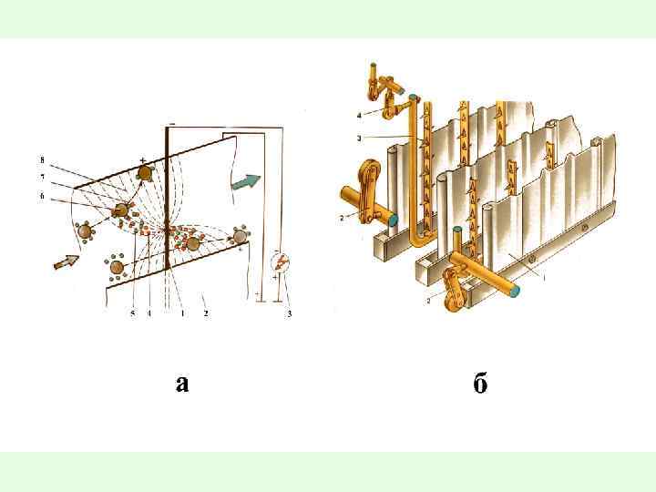 Схема работы рукавного фильтра: а – очистка от пыли, б – регенерация фильтра сжатым воздухом.