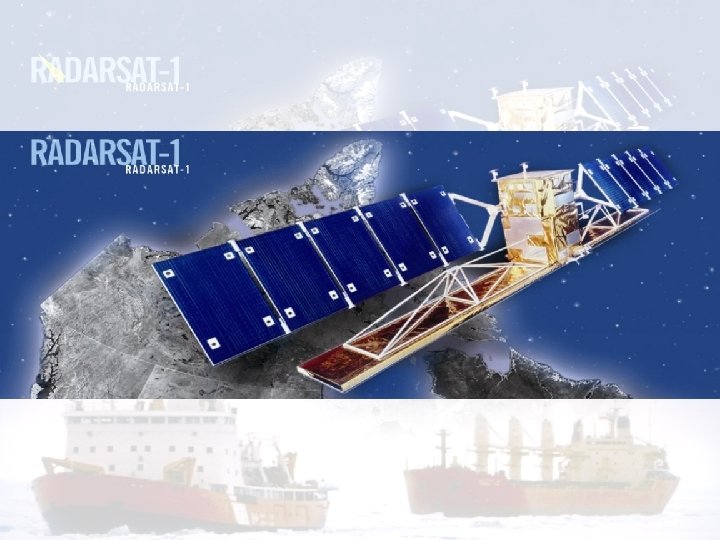 Canada's first operational EO satellite HH Polarized C-Band SAR Launched Nov. 1995 – Operational April 1996 Mission Lifetime: 5. 25 years – Since Launch: 11 years Ice Monitoring Pollution Monitoring Disaster Watch – International Charter Hurricane Watch Forestry Crop Monitoring Antarctic Mapping Missions (1997 & 2000) Background Mission (Global stereo coverage of landmass) Sun-synchronous, Dawn–Dusk LEO Altitude: 798 km Period: 100. 7 minutes Repeat Cycle: 24 days Orbits per day: 14 As of 30 April 2007 Total minutes of data: 426, 688 Total orbits completed: 59, 957 Total of customer image requests: 274, 534 Average System Performance: > 95%