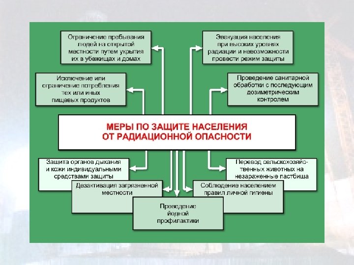 Содержание Радиация РОО – радиационно-опасный объект Радиационная авария Действия при оповещении о радиационной аварии Если ваш дом попал в зону радиоактивного заражения Лучевая болезнь Движение по зараженной радиоактивными веществами местности Меры по защите населения от радиационной опасности Тесты
