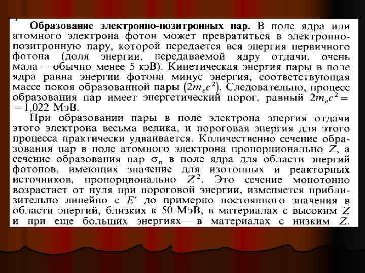 Взаимодействия фотонов с веществом l Фотоэффект l Комптон-эффект l Образование пар l Другие электронно-позитронных взаимодействия