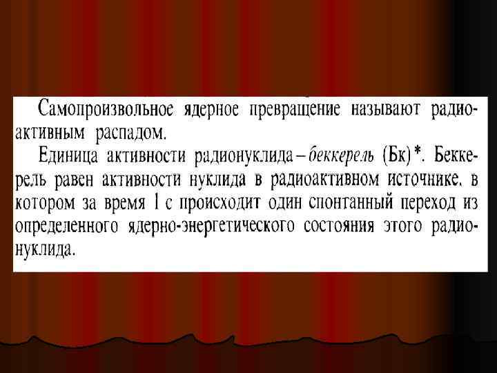 l Нуклид – вид атомов с данными числами протонов и нейтронов в ядре l Радиоактивность – самопроизвольное превращение неустойчивого нуклида в другой нуклид, сопровождающееся испусканием ионизирующего излучения