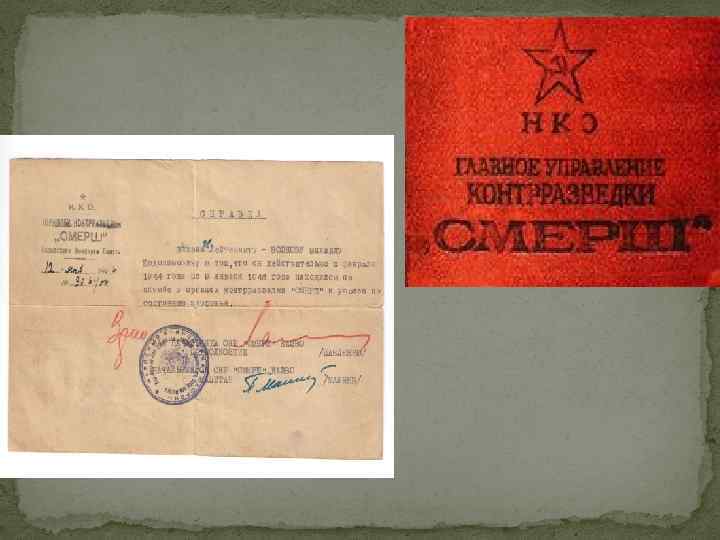 «Смерть шпионам!» - «СМЕРШ» После госпиталя находился во второй Никольской танковой гвардейской бригаде сорок шестой армии третьего украинского фронта. С сентября 1944 года по январь 1945 года лейтенант Волков М. Е. воевал на втором Украинском Фронте. В это же время с марта 1944 года по январь 1946 год находился на службе в органах контрразведки «СМЕРШ» . Легендарная советская военная контрразведка "СМЕРШ» (смерть шпионам) была создана 19 апреля 1943 года и существовала три года.