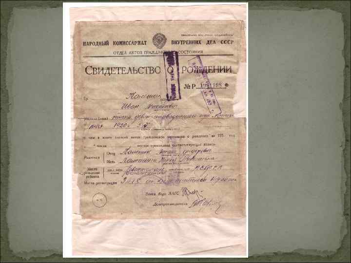 Заключение Прошло мирное время, но отголоски той войны остались в каждом городе и селе. Скоро День Победы - «праздник со слезами на глазах» . И невольно хочется сказать чтото важное, хорошее. Человек должен помнить о своих корнях, тогда история страны не будет казаться далёкой. Вспоминая те трудные годы, годы военного лихолетья, удивляешься, сколько горя и тяжёлых испытаний выпало на долю наших родных. Не забывайте никогда о тех утратах! И нам, молодому, подрастающему поколению надо стараться быть достойными памяти своих дедов и прадедов, отдавая дань уважения ветеранам Великой Отечественной войны и труженикам тыла. Пусть написанная мною работа о войне, о моем прапрадедушке, будет благодарностью за счастливое детство. Гипотеза, поставленная в начале работы, нашла подтверждение, мы обязательно побываем на братской могиле воинов КА.