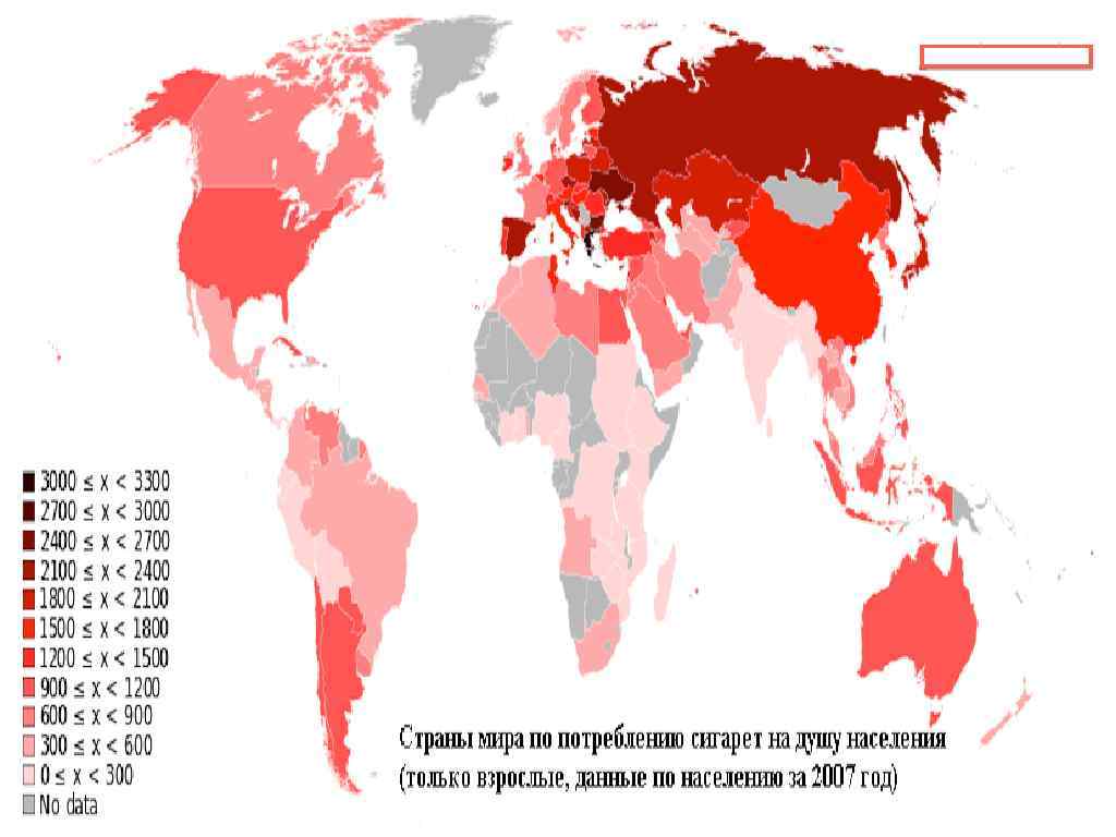 Курение и смертность населения в мире Доклад экспертов ВОЗ (19. 02. 2009 г. ) • В XX веке от курения умерло 100 млн. человек • В наше время ежегодно от курения умирает 5, 4 млн. человек, а 2030 г. эта цифра будет 8 млн. • В XXI веке от табака может умереть 1 млрд. чел. • ⅔ курильщиков проживают в 10 странах: Китай, Индия, Индонезия, Россия, США, Япония и др. • Смертность от табака больше, чем от туберкулеза, ВИЧ/СПИДа и малярии вместе взятых