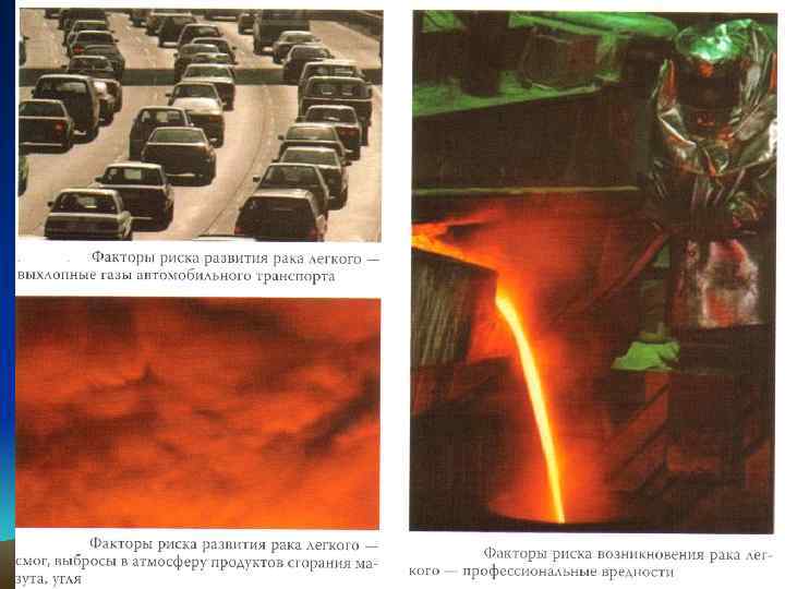 Профессиональные вредности • • Повышенную заболеваемость раком легкого обнаруживают: у каменщиков, камнерезов; у рабочих горного, керамического, стекольного и глиноземного производства; у людей, контактирующих с выхлопными газами транспорта; у работающих на производстве графита, в асфальтовом производстве, в обработке металла.