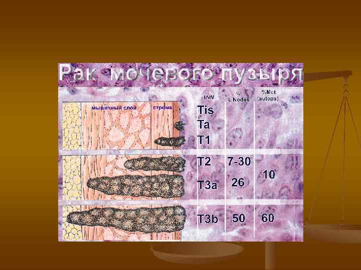 с клинических позиций рак мочевого пузыря разделяют на 2 группы: n а) поверхностный рак - in situ (Tis), Та, Т 1 n б) инвазивный Т 2 -Т 4