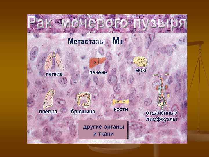 Классификация n n 1. 2. 3. в настоящее время общее признание получила международная клиническая классификация рака мочевого пузыря по системе TNM она основывается: на степени опухолевой инвазии стенки мочевого пузыря и окружающих тканей первичной опухолью (Т) на наличии регионарных (N) метастазов на наличии отдаленных (М) метастазов