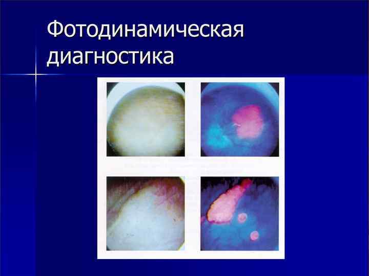 Флюоресцентная диагностика n n таким образом, врач имеет возможность увидеть новообразования, которые не видны при обычном освещении, в том числе и рак in situ, провести биопсию из флюоресцирующих участков или удалить их чувствительность флуоресцентной цистоскопии на 20% превосходит чувствительность цистоскопии при обычном освещении