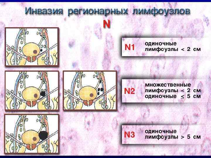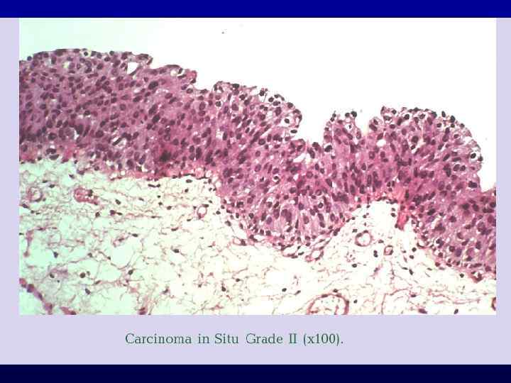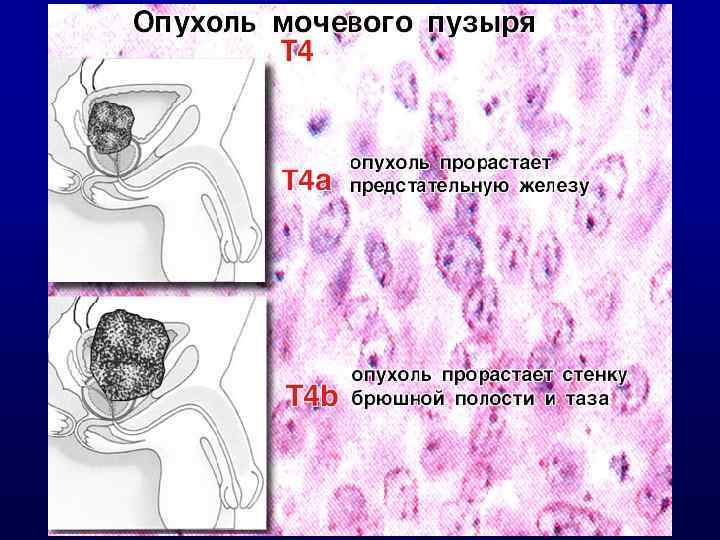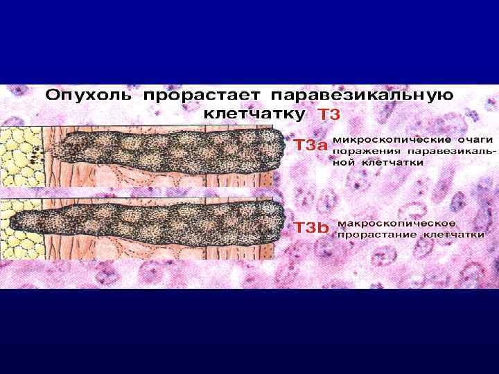 q TNM классификация 2002 года § Ta – неинвазивный папиллярный рак § Tis – рак in situ: “плоская опухоль” § T 1 – опухоль прорастает подслизистую оболочку (+lamina propria) § T 2 – опухоль поражает детрузор - T 2 a – поверхностный слой - T 2 b – глубокий слой § T 3 – опухоль прорастает паравезикально - T 3 a – микроскопически - T 3 b – макроскопически § T 4 – распространение на соседние органы: a) простата, матка, влагалище или b) стенки таза или брюшная стенка § N – регион. ЛУ(N 0 -3) M – отдаленные MTS.