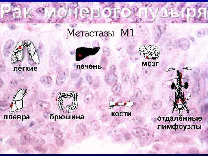 q Для удобства при выборе тактики лечения РМП подразделяется: § Поверхностный РМП (Tis-Ta-T 1) чаще высокодифференцированный папиллярный (75%) имеют >80% общую выживаемость; - 15% прогрессируют в инвазивный рак МП - у большинства пациентов возникнет рецидив; § Инвазивный РМП низкодифференцированный имеет 50 -60% 5 -летнюю выживаемость; - 85% первично - инвазивные; § 15% имеют отдаленные метастазы; - наиболее часто MTS диагностируются в лимфоузлах, лёгких, печени.