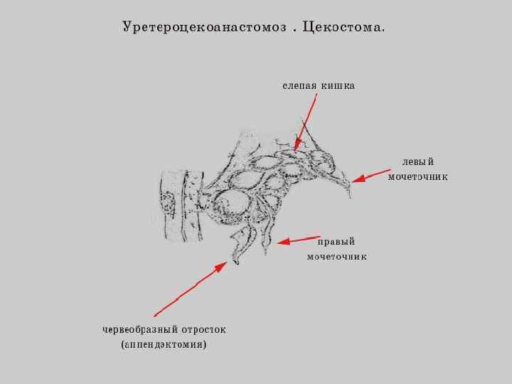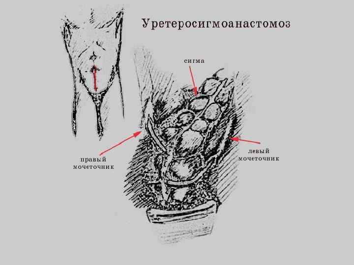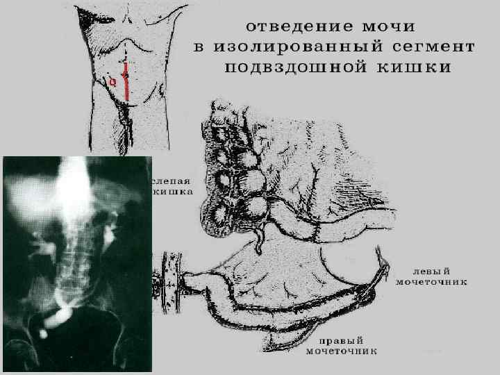 Пересаженный левый мочеточник Правый мочеточник Мочевой пузырь Левый мочеточник Линия Резекции МП Уретра Резекция МП с уретеронеоцистоанастомозом