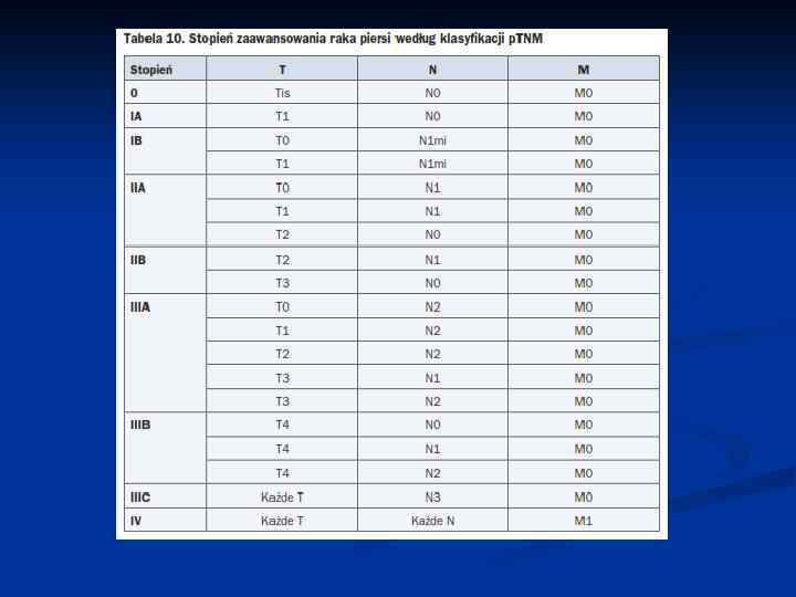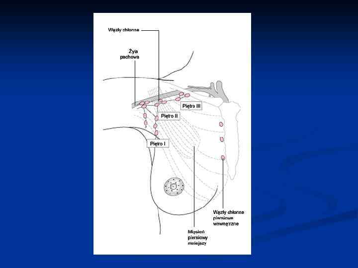 Rak piersi – objawy • • • ból cechy zapalenia powiększenie węzłów chłonnych • • najczęściej pachowe po stronie guza czasem jako pierwszy objaw (carcinoma occultum)